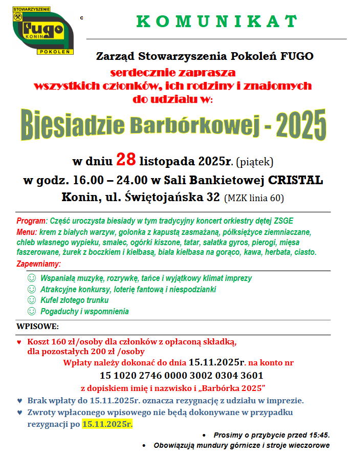 Barbórka 2025 – zapisy